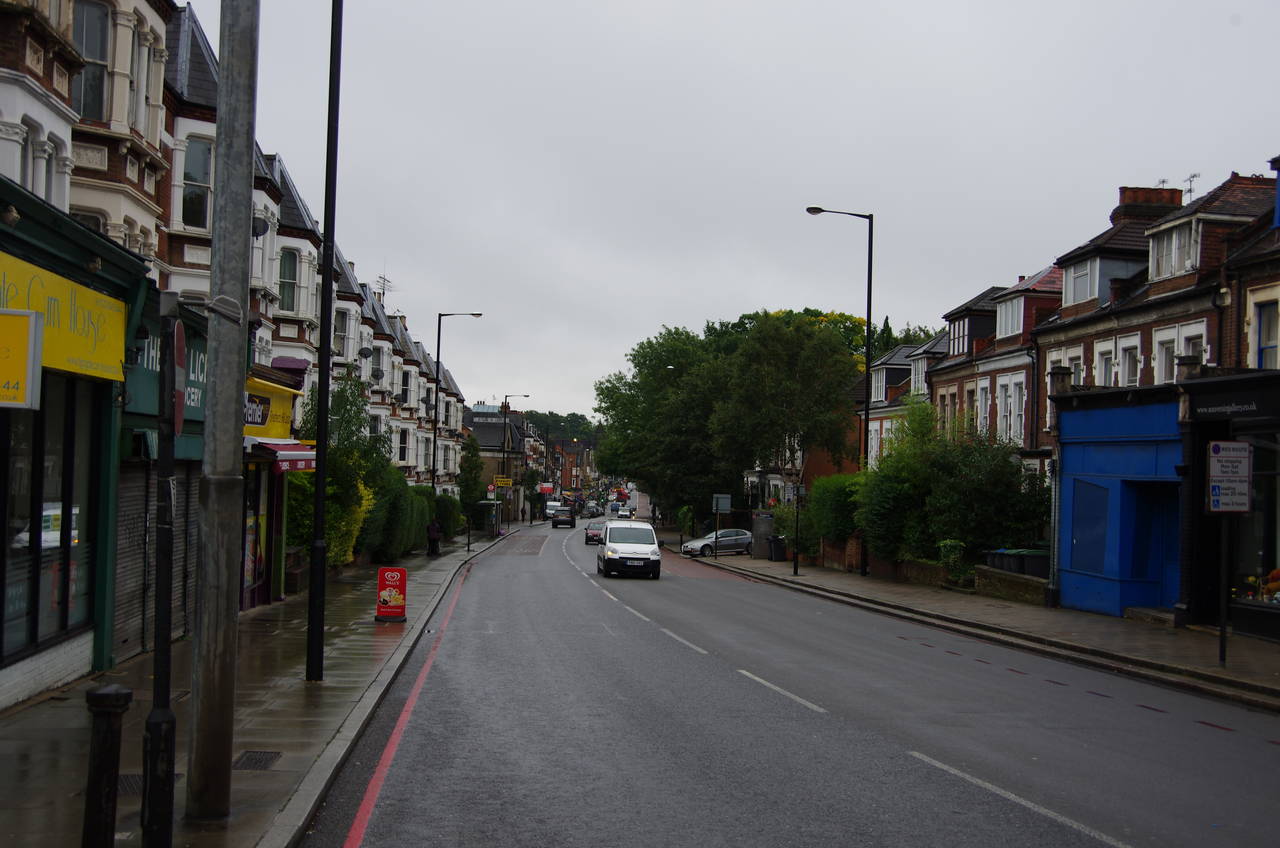 The Capital Ring turns left on Church Street, following it through the centre of Stoke Newington for about 550 metres. Towards the end of this stretch, the road passes the Daniel Defoe pub, named after the author and political dissenter, best known for writing Robinson Crusoe, who lived in Church Street.