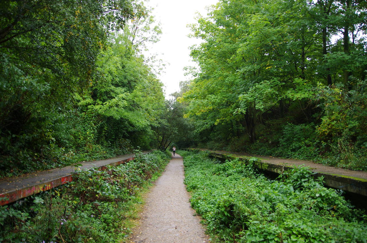 The Parkland Walk uses the trackbed of the same disused railway branch line that I had crossed in Highgate Wood near the end of the previous stage of my walk. Opened in 1867, the line ran from Finsbury Park to Edgware and operated until 1954 for passenger traffic before closing entirely in 1970. By 1984, the line had become the property of the Borough of Haringey, the tracks had been lifted and the land turned into a nature reserve and walking path.