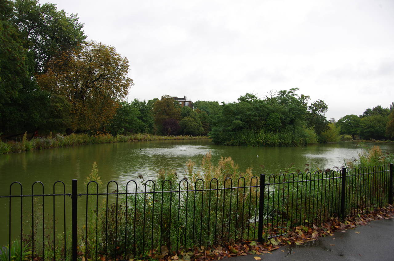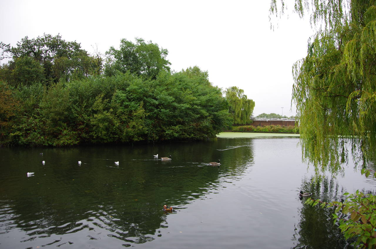The Capital Ring continues ahead across Finsbury Park, passing a little to the right of the park café before skirting around the right-hand side of a playground to reach a path junction by the McKenzie Flower Garden. The Capital Ring bears right to head through the flower garden, but first I made a very short diversion to the left for a look at the park's boating lake (picture 9), and it's large population of ducks.
