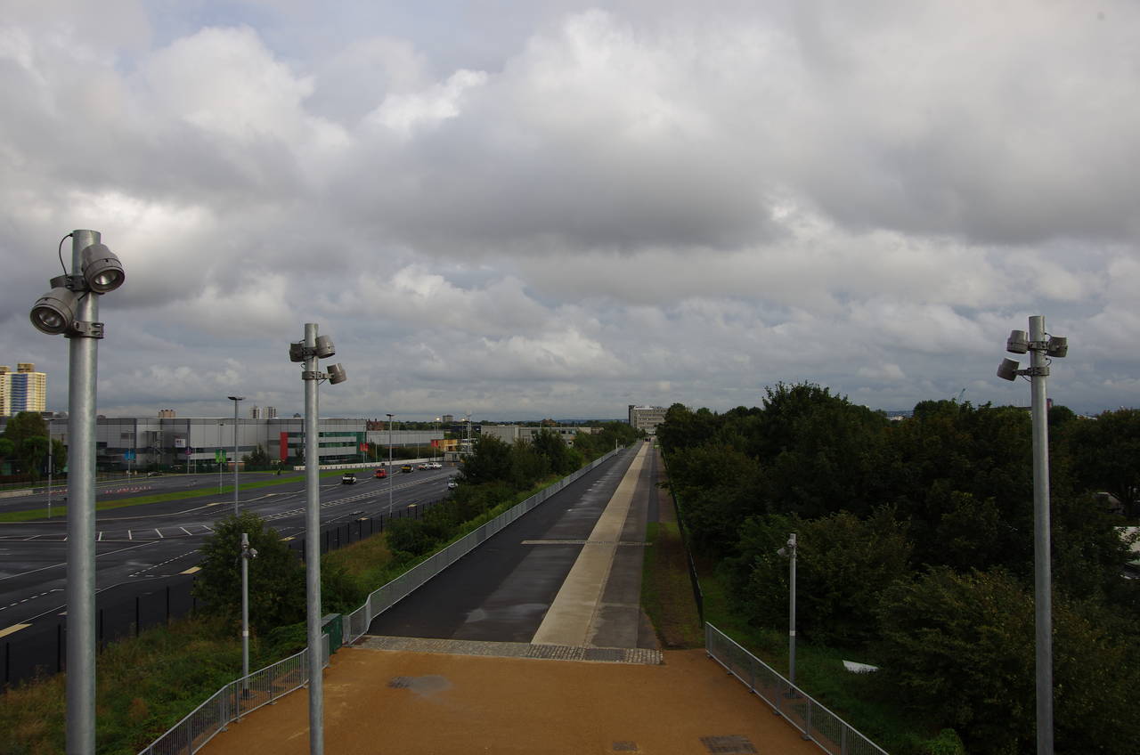 From the top of the footbridge there was a good view ahead along the next section of the Greenway (picture 32), though it might be difficult for future walkers to get a chance to take in this view. When I took a guided walking tour of the Olympic Park a few days later, the guide told us that the bridge, along with quite a number of the buildings constructed for the games, was only temporary and would be pulled down during the following year.
