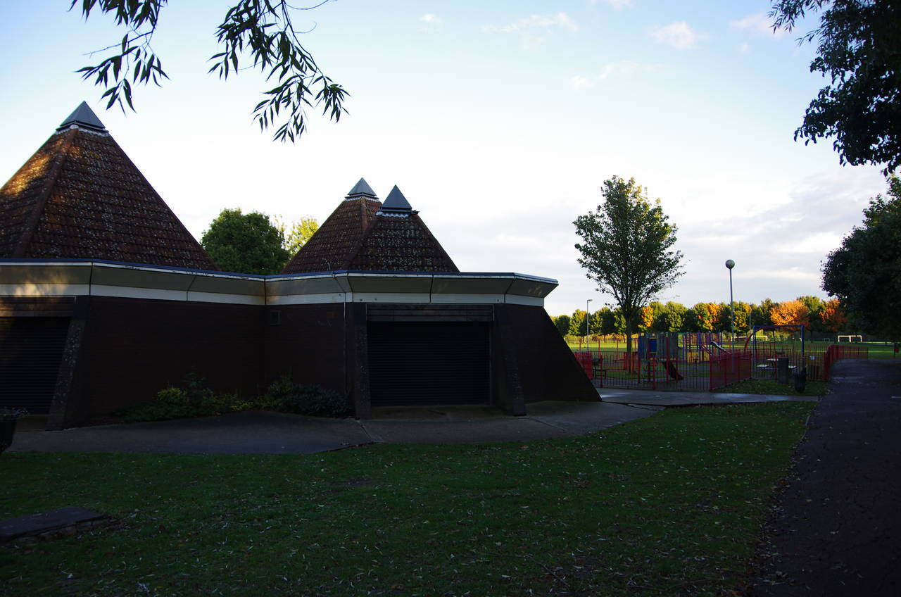 The Capital Ring sticks to the tarmac path, which winds its way through the park, passing a variety of trees that were imported from around the world and are described on a series of plaques. Reaching Tollgate Road, the route crosses over into Beckton District Park South and continues to wind it's way through the pleasant park, eventually coming up beside Stansfeld Road just before passing the rather unusual looking Will Thorne Pavilion (picture 37).