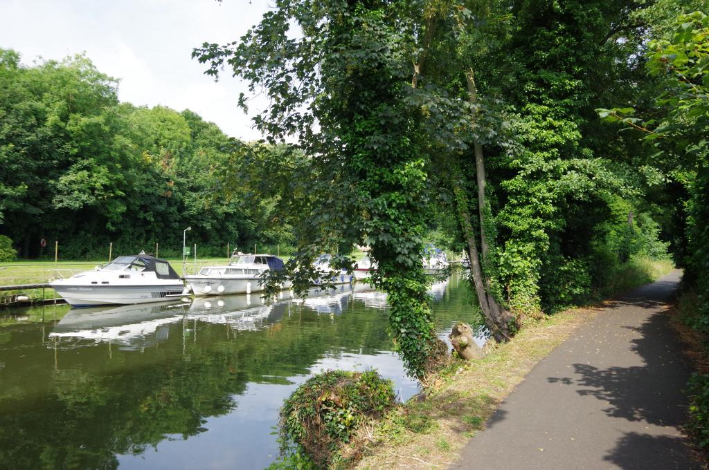 Beyond the bridge the river takes a long right-hand bend around the suburb of Ringlestone, where the opposite bank was lined with a long series of moorings (picture 5). A few hundred metres of unoccupied riverbank (picture 6) separates Ringlestone from Allington, where the river passes Allington Marina and then sweeps back to the left, changing course from northeast to due west as it approaches Allington Lock (picture 7). This is the lowest lock on the Medway and from here onwards the river is tidal.