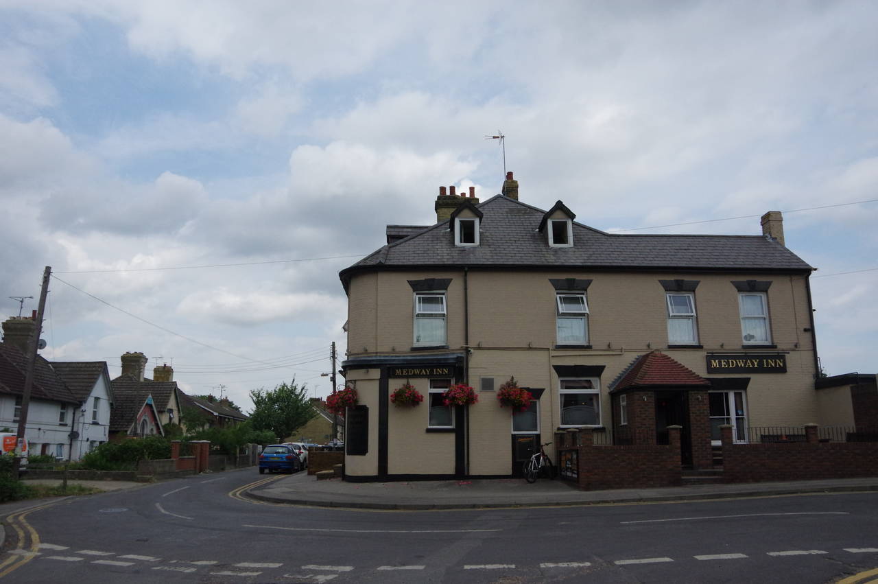 The path continues along the floodbank, with good views across the valley to the North Downs (picture 18), eventually rejoining the road about 400 metres north of the old church. Most of the next 1200 metres along the road to the village of Wouldham was one large building site, with a new housing estate called Portland Gardens in the early stages of construction. Sight of the river is soon lost as it bears away from the road and I found the walk through the new estate to be a bit of a trudge, though hopefully it will be more pleasant when construction finishes. Fortunately a stop for a quick pint at the Medway Inn (picture 19) at the near end of Wouldham's High Street renewed my energy for the remainder of the afternoon's walk.