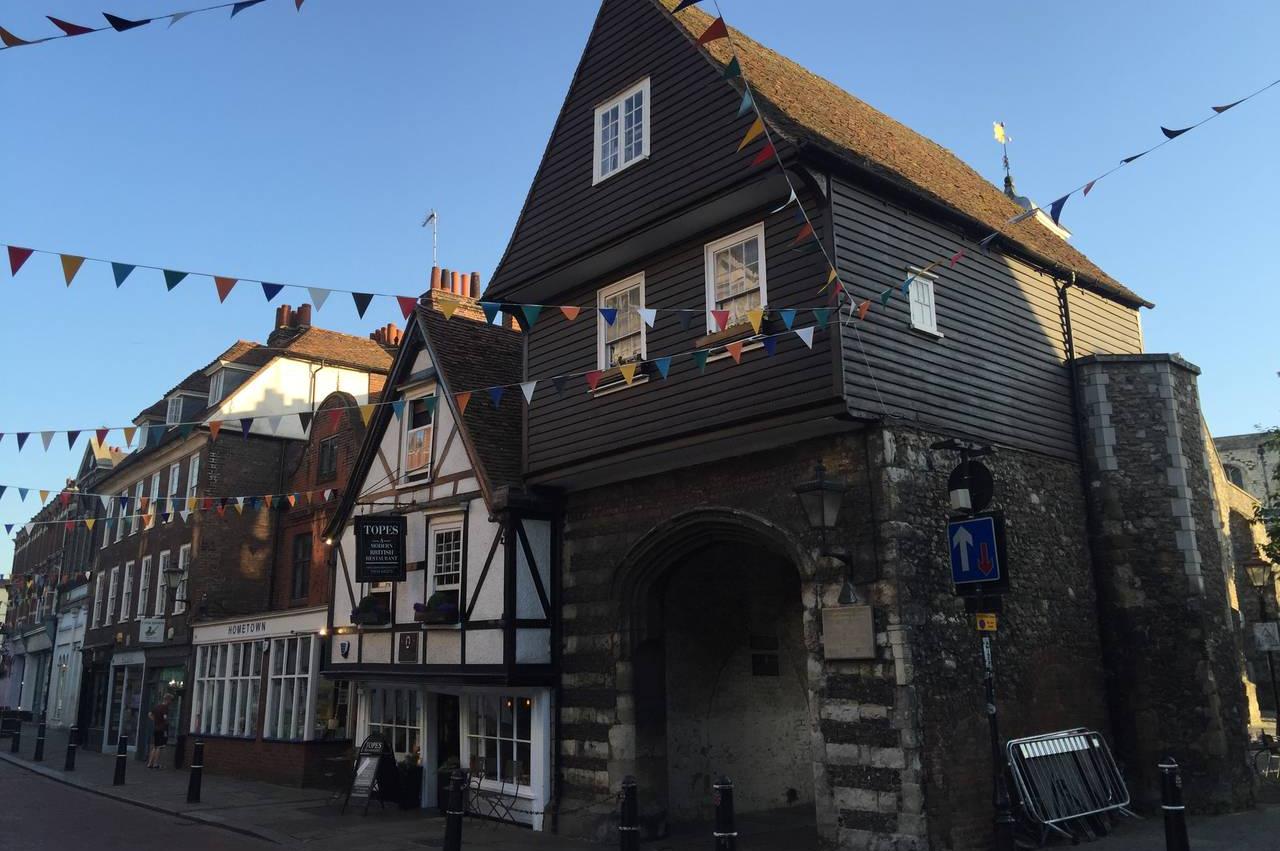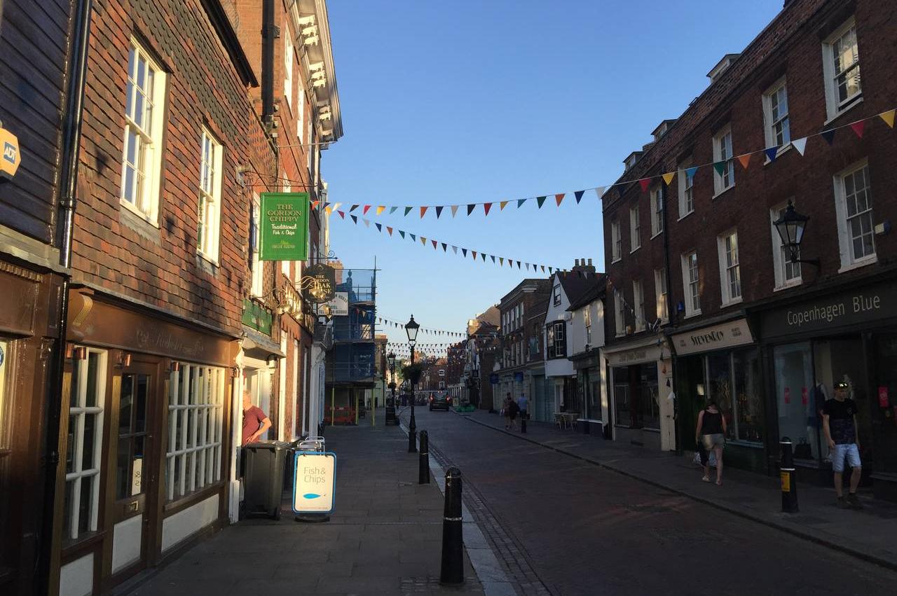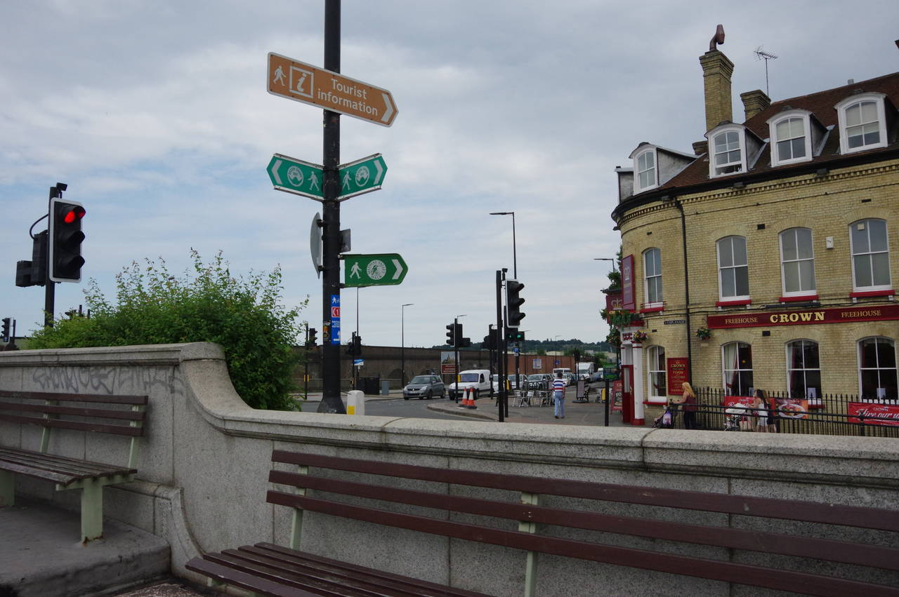 Behind the castle stands Rochester Cathedral (picture 30), where construction began in 1080, forty-seven years before work started on the castle. Heading left from the front of the cathedral, Rochester's High Street is reached by passing through College Gate (picture 31), which bears one of several plaques attached to buildings around the town that recall their use in the literary works of Charles Dickens. Continuing down the long High Street there is an interesting mix of old and new buildings (picture 32), which I would love to have more time to explore.