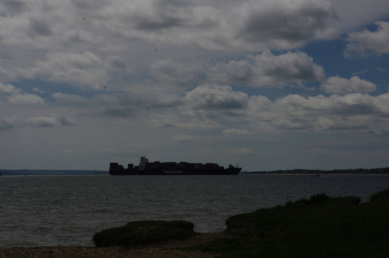When not enclosed by dense bushes, the cliff-top path gave good views across the Solent and Southampton Water (picture 26). As I walked along I watched a large container ship slowly progress along the Solent from the west and then turn the corner into Southampton Water (picture 27), presumably headed for one of Southampton's commercial docks.